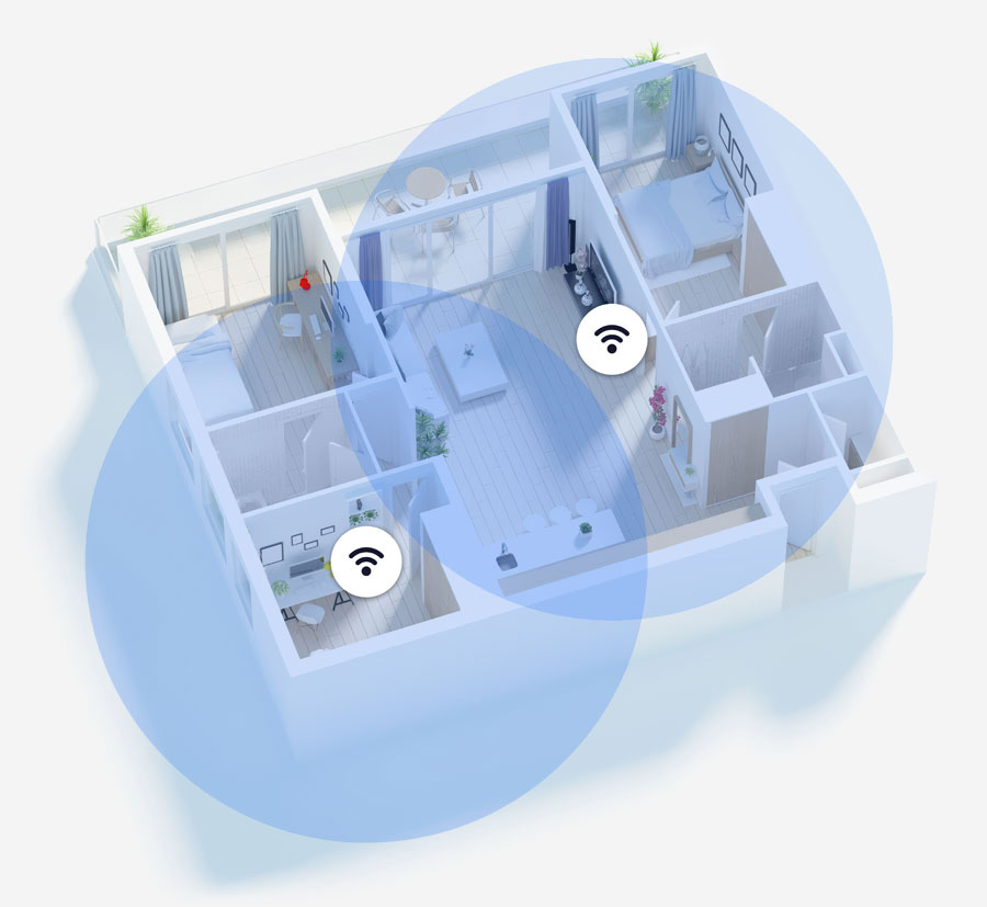 Med flere wifi-punkter får du et intelligent netværk, der fordeler trafikken, så alle enheder kan være online samtidig. Det betyder mindre risiko for langsomt internet, især når husstanden streamer tv, arbejder, gamer og uploader billeder på samme tid.